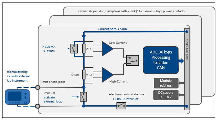 圖3:每個模塊插槽配置兩個相互隔離的測量通道 (圖中僅顯示一個通道)