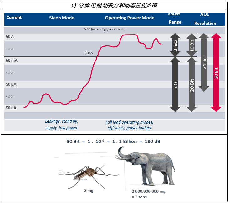 圖 2: 單一分流電阻 vs. 可調分流電阻 – 動態(tài)量程